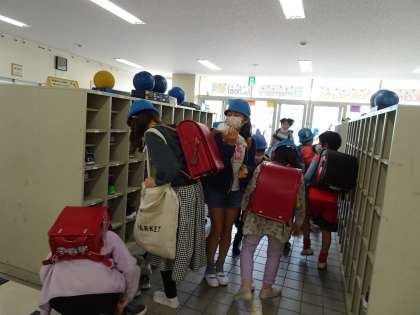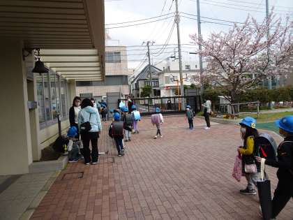 歩き方も訓練します。一人で帰ることができるように、自分の帰り道をわかるとよいですね。他学年も下校する時はどの子も笑顔でした。