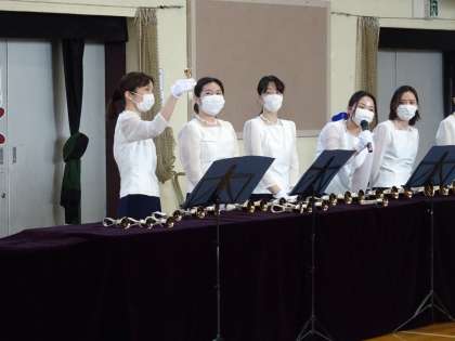 今日の一番大きなハンドベルは、5キログラムぐらいあるそうです。30万円くらいするそうです。お寺の鐘のような音がしました。