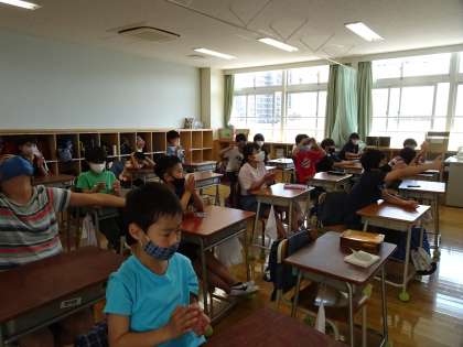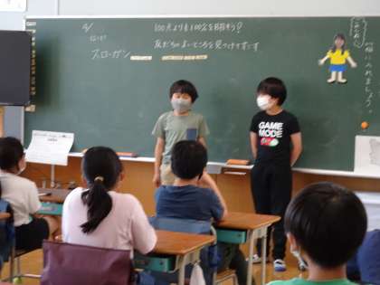 代表委員になりたい人がたくさん出ました。決意表明に力が入った4年1組でした。