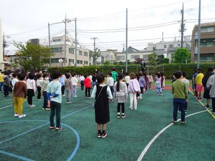 1年生も列に入りました。6年生がすすんでお世話をしてくれました。とても素敵な光景でした。6年生の代表のあいさつも立派でした。