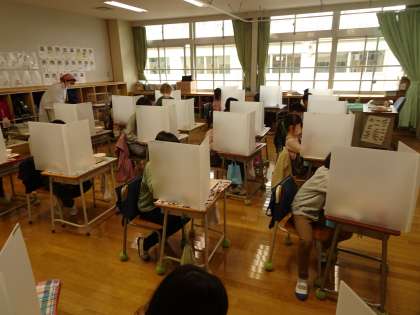 3年生の様子です。黙食も徹底してできました。話す時にマスクをしっかりして話す習慣ができているのにも感心しました。