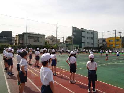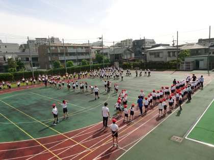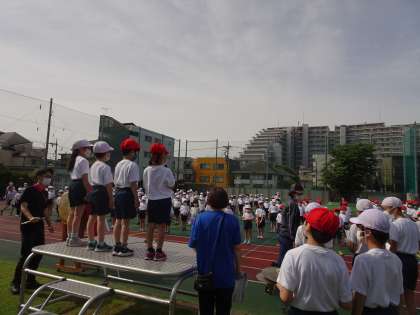 いよいよ全校練習です。1年生のはじめの言葉、立派な返事ができました。司会は、代表委員です。