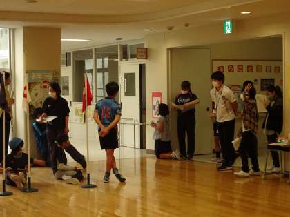 審判係は、実際の動き方についてシミュレーションしています。教員とのチームワークも大切です。