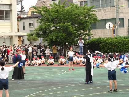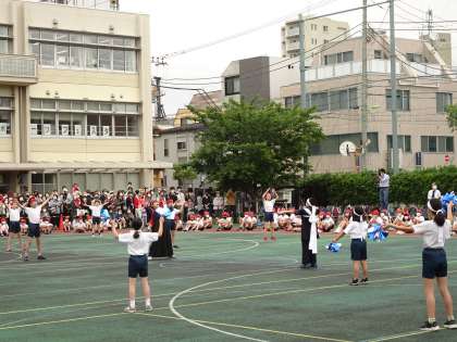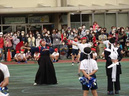 エール交換は、相手をたたえ合う目的です。全校児童を巻き込んで応援を盛り上げることができた応援団。練習の成果が出ていました。