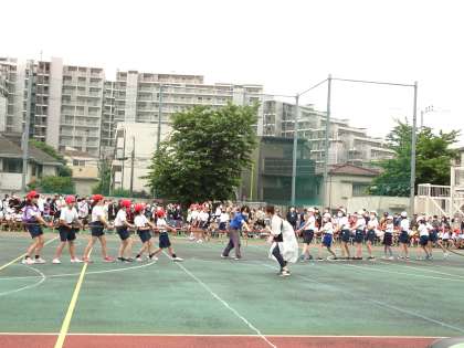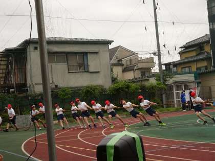 助っ人方式の綱引き。力を試す運動です。チームワークと、ダッシュ力がものを言いました。場所も交換しているのですが、なぜか勝負は厳しいものがありました。