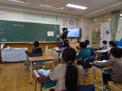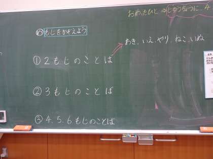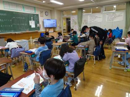 1年生の算数の授業です。数を数えて、いくつといくつかを考えていました。足し算引き算につながる勉強です。