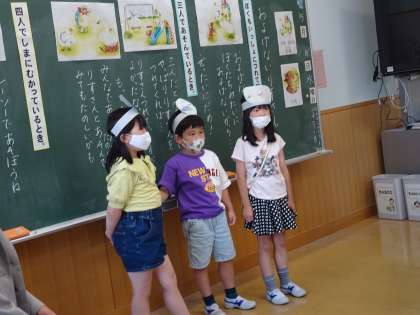 今年度は、国語、道徳、体育の授業力を高めるため、全クラスで研究授業を行います。スタートは、2年生の道徳です。『およげないりすさん』公正・公平という項目の内容を考える教材でした。