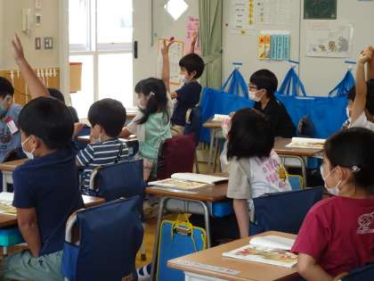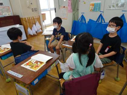 はなのみち くまさんろりすさんのお話です。文章全体をよくとらえて、素敵な感じ方を発表していました。