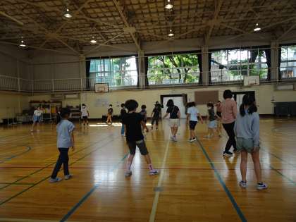 5年生は、川場移動教室に向けて、準備をしています。今日は、伝統の「ジンギスカン」と「マイムマイム」のフォークダンスを練習しました。