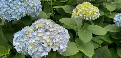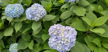 歩道に咲くあじさいの花