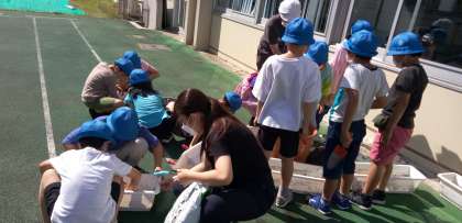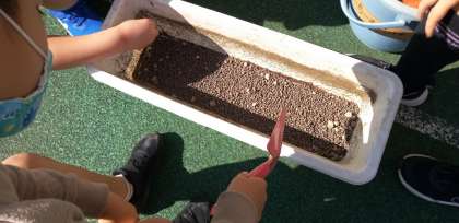 土を耕して、よい具合にして種を蒔きます。土をさわる経験がとても大事です。