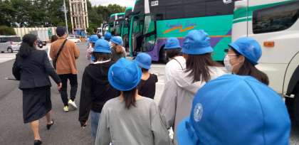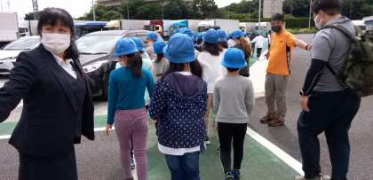 若林小学校の5年生と会いました。駐車場もまだすいています。雲が厚くなってきました。雨になりませんように。