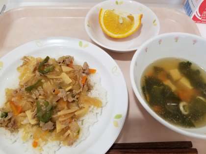 今日は豚肉たっぷりのスタミナ丼。すこしとろみを