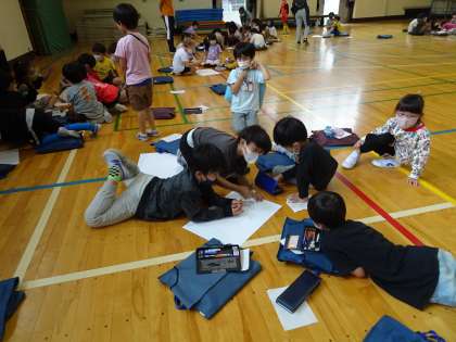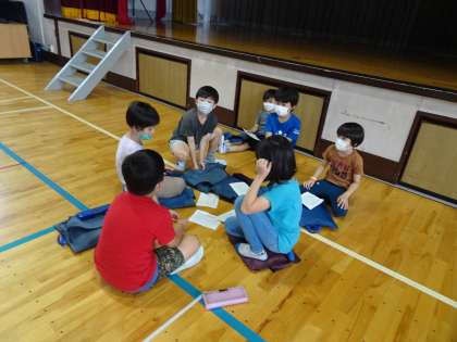 フィールドワークをしたグループで、発見したこと、思ったことを話し合いました。見通しをもって、どのように発表するか、何をするか、考えました。
