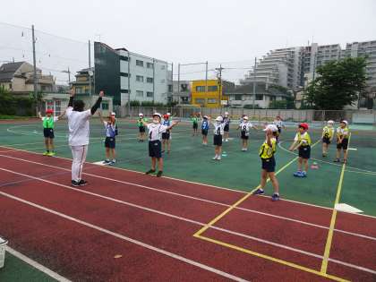 3年生、2クラスとも、楽しんでゲームができました。ボールを取ったら、どこに投げるかを迷うことも少なく、楽しく声をかけあっていました。