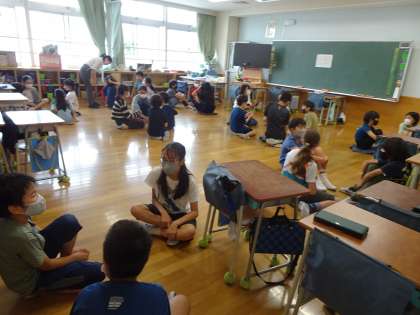 ファミリーグループの集団にも慣れてきました。3年生が、うまく気をつかって、2年生、1年生をとりまとめています。