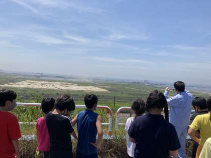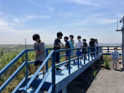 中央防波堤の敷地内をバスでめぐり、埋め立て地の外観を見て、空気の匂いも感じました。