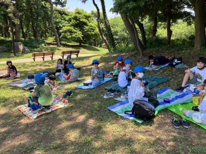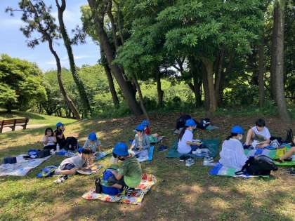 葛西臨海公園で、日陰を選び、お弁当を食べました。