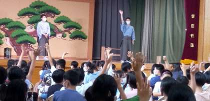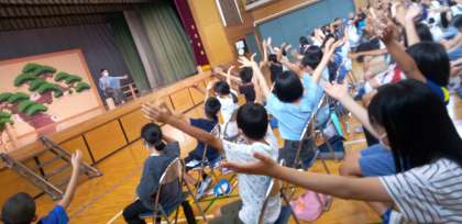 最後は、フクロウになってしまうところを、ワークショップでえんじました。家でやるときに、思い切り声を出してみてください。