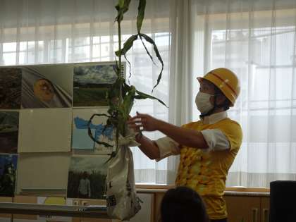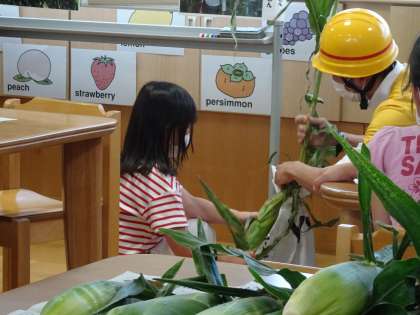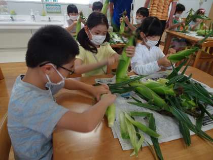 グループごとに、全校分のとうもろこしの皮むきを頑張りました。