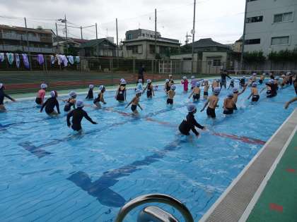 1年生は、初めての水泳。水深を浅くして、水遊びをたくさんしました。