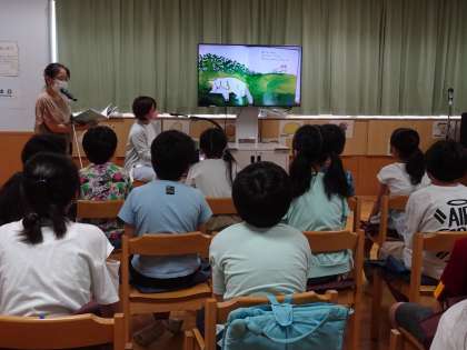 お話工房による読み聞かせです。5年生は、たくさんの感想を伝えてくれました。