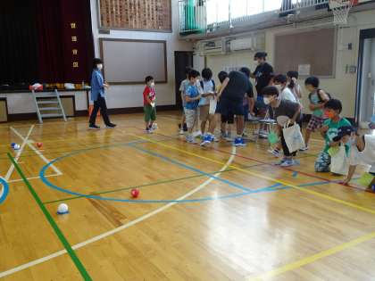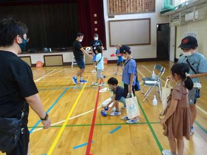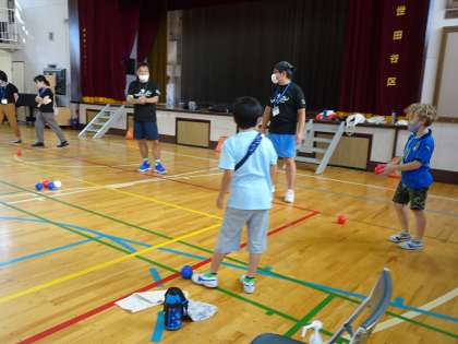 簡単なようで、なかなか難しいボッチャです。これも、保護者の皆さまとおやじの会で、ルールを作り、競い合いつつも楽しいゲームができました。