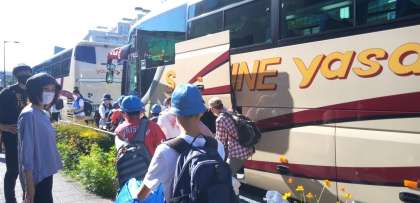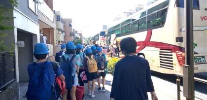 バスが出発しました。マナーを守っている子どもたちです。保護者の方々や先生方がたくさんお見送りに来てくださいました。