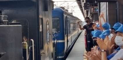 SLの旅。到着した列車に拍手が起こりました。