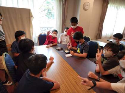 部屋の様子。会議室でのレクリエーション。生き生きしています。