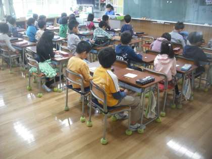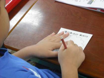 中里小学校では、校長先生の話を放送で行うことにより聞き取り、カードに書き取る機会を作っています。今日は「いろいろな出来事がどうして起こるのか疑問をもとう」という話でした。「なぜ紙に鉛筆で書くことができるんだろうと不思議に思いました。」「どうして涙はしょっぱいのだろう」「どうして自転車は動くと倒れないのだろう」などの疑問が出ていました。