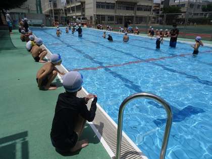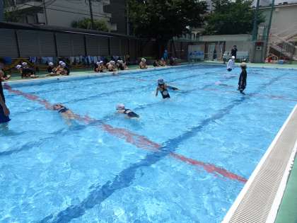 短い間でしたが、3年ぶりに夏休みの水泳教室が開かれました。7月前半は、子どもたちもたくさん参加しました。