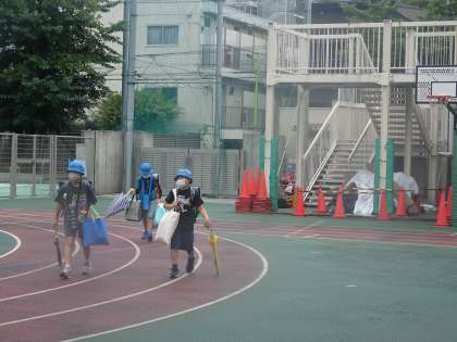 いよいよ始まりました。あいにくの雨で、たくさんの荷物を一緒に運んでくださるおうちの方もいらっしゃいました。どの子もさわやかにあいさつをしてくれました。