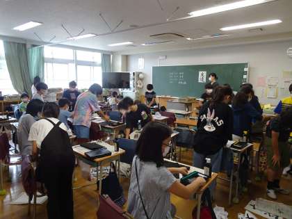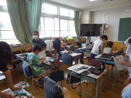 5年生は、書写[友達]という文字を真剣に書いていました。友達と見合うことも勉強です。