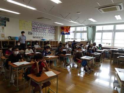 3年2組 4年1組 4年2組 それぞれ、学級では、いざという時のバリケードの作り方や、静かにじっとしている必要などについて話されました。