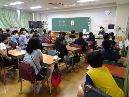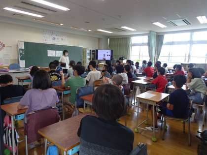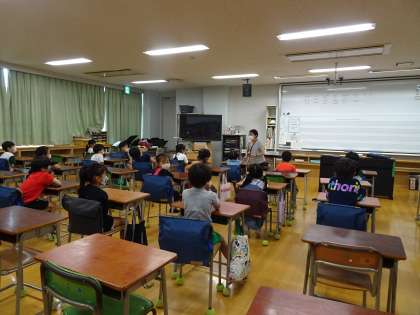 5年生、6年生は、もしもの時のこと、命の大切さを考える時間になりました。1年2組は、音楽の時間でした。