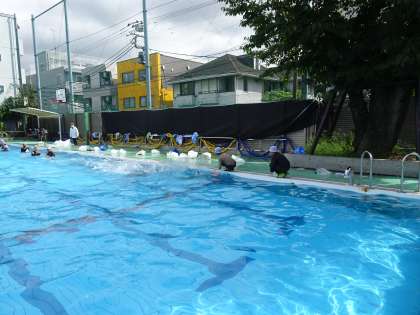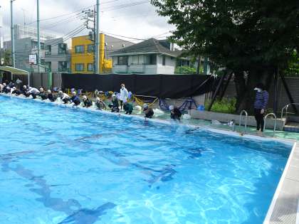 浮かびにくい、動きにくい、冷える、いろいろな感想を述べていました。仰向けに浮くことも必要だと気づきました。ポトンと落ちる練習もしました。落ち方、立ち方等も訓練です。