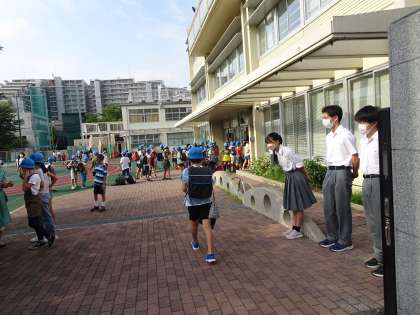 6年生が張り切っています。中学生も、慣れてきました。下学年の児童から声をかける姿も見られます。