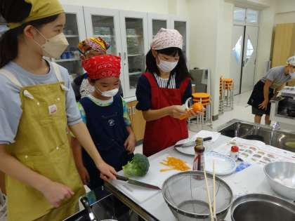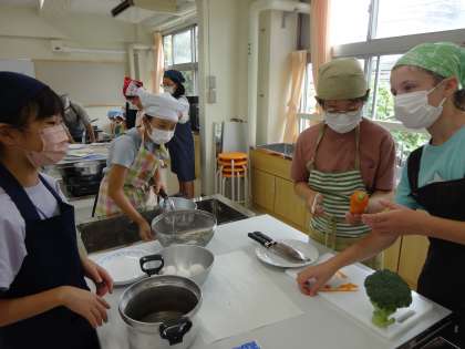 5年生は、新しい家庭科室で、調理実習をしました。ゆでる勉強です。たまご、ブロッコリー、にんじん、青菜・・・材料によりゆでるコツがちがうことを学びます。