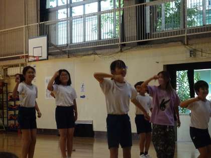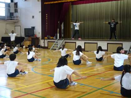 演舞麗夢のチームに申し込んで、3年目にして実現しました。3,4時間目は、5年生のワークショップです。どの子も思い切り上手に踊ることができました。