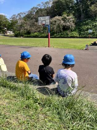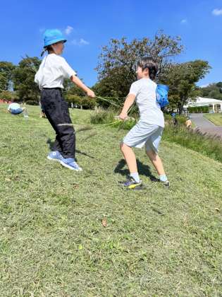 たくさん遊んで、汗をかきました。楽しみにしていたお弁当の時間の写真は、帰校してからお伝えします。