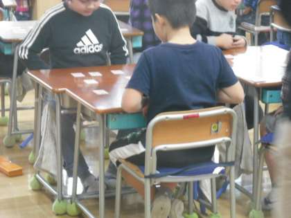 百人一首を楽しみました。五色にグループ分けしてある百人一首です。3年生が取り組んでいました。