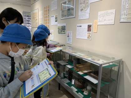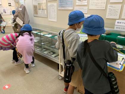 兵隊さんの使った武器や道具、世の中の様子がわかる写真、真剣に見学していました。