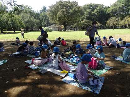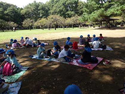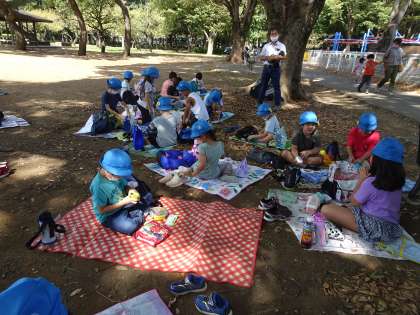 「ああおなかすいた〜」とにこにこの子どもたち。愛情いっぱいのお弁当をペロリと平らげました。風が吹いて、涼しいどころか、砂まじりのおむすびを食べることになり、またまた生活力が付きました。
