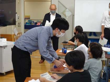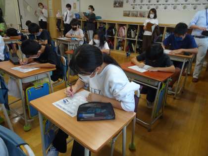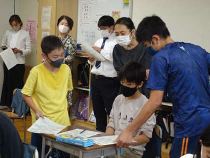 世田谷区の先生方が集まり、研究授業をご覧になりました。学級経営部です。4年2組が、ふれあいと協力を目的とした授業をしました。