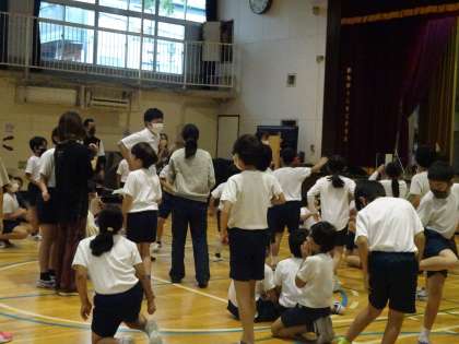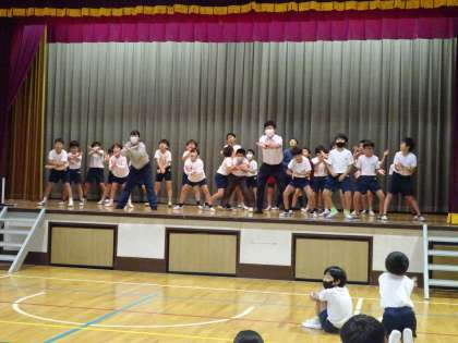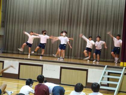 4年生、5年生がヒップホップのプロのダンサーに教わるワークショップです。土曜授業では、発表会をしました。