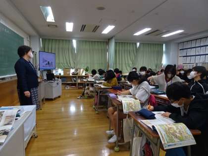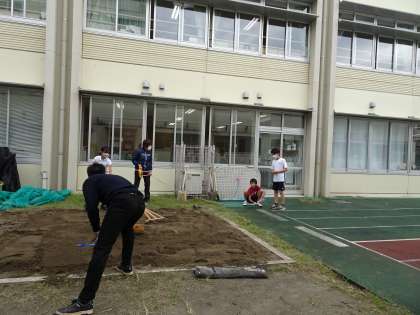 担任の先生がお休みなので、副校長先生の社会科の授業です。武士の世の中を想像して意見を述べていました。2時間目は、連合運動会の練習です。お父さんがトンボを手伝ってくださいました。