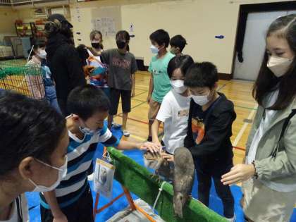 珍しい動物、大きな鳥、子どもたちの大好きな小動物など、ちょっと怖いと思っていた子どもたちも、興味がわいてきました。中休みには、高学年もさわらせてもらいました。