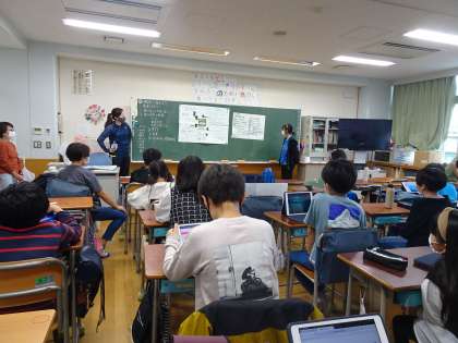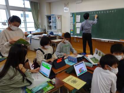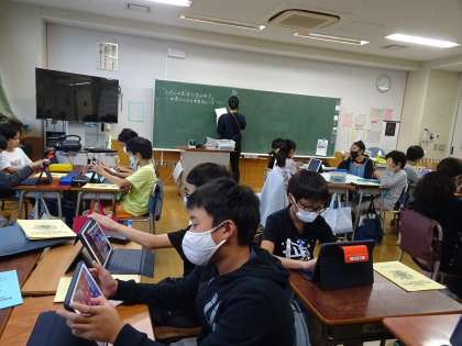 SDGsの研究です。4年生から6年生までの小さいグループで、アクションを考え、調べて研究しています。