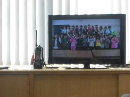 お昼の放送でのテレビ放送で、今日は、1年生が全員で歌や手遊び歌を披露してくれました。休み時間に撮影した映像でした。息のあった歌はとてもかわいらしかったです。
